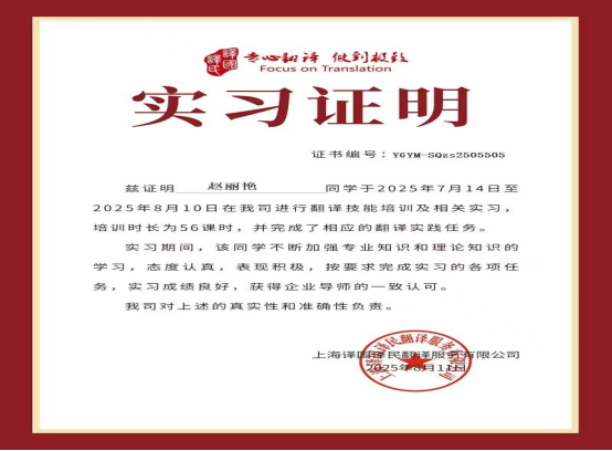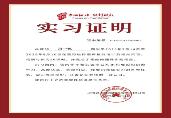 为主动应对这一趋势,KY开元集团官网入口积极拓展校企合作渠道,创新人才培养模式,积极推动人才培养与行业需求紧密对接,特积极组织学生参与由译国译民集团主办的“2025年暑假线上实习”项目,为学生提供了接触前沿翻译技术和行业实践的机会。通过参与该项目,帮助学生正确认识AI技术的工具属性,掌握智能时代语言服务新技能,深化对现代语言行业的认知,有效弥补在校学习与行业实践之间的差距。
