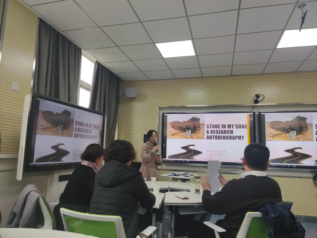 2020年11月24日下午,KY开元集团官网入口卢蓉于2号教学楼704教室作了有关“Stone in My Shoe:A Research Autobiography”的主题讲座,KY官网部分教师、全体研究生以及17级部分学生聆听了此次讲座。讲座由KY开元集团官网入口杨江锋副院长主持。