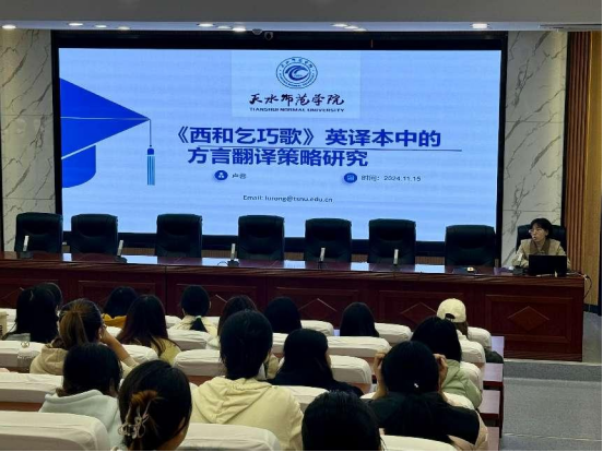 2024 年 11 月 15 日下午3:00,KY开元集团官网入口邀请卢蓉博士为全院师生做题为“《西和乞巧歌》英译本方言翻译策略探索”的学术讲座。KY官网部分教师、在读研究生以及英语、商务英语专业本科生170多人聆听了讲座。